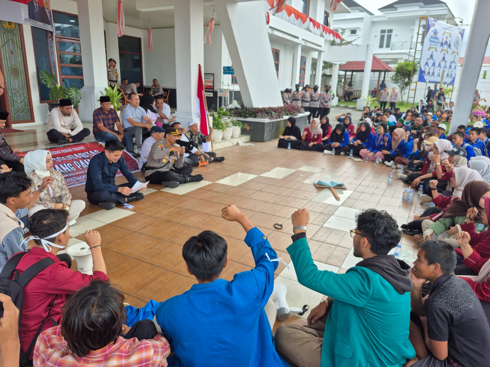 Terlihat selama sesi Dialog Antara perwakilan Mahasiswa bersama Ketua DPRD padang Panjang Imral,S.E dan Kapolres Padang panjang berlangsung dengan sangat damai.