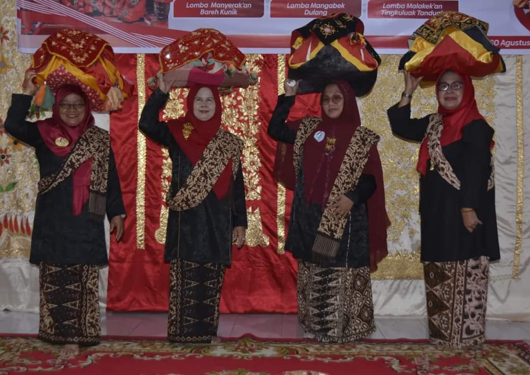 “Karena bertepatan dengan peringatan HUT RI, maka digelarlah beberapa lomba untuk turut memeriahkannya. Adapun lomba yang digelar yaitu malakek an tingkuluak tanduak, manyerak bareh kunik serta mangabek dulang,”