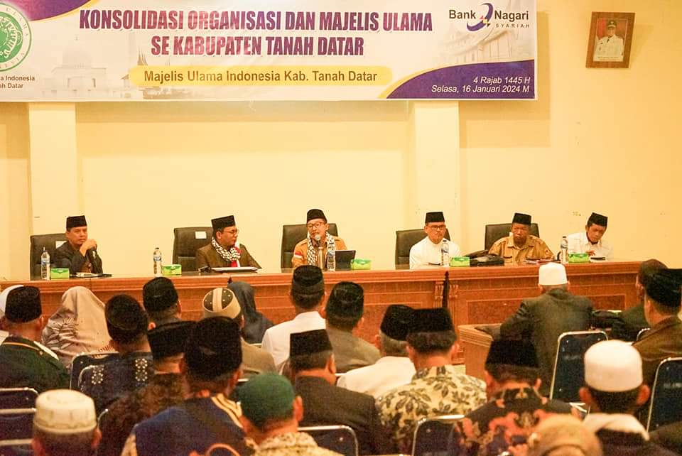 “Dalam konsolidasi yang dihadiri MUI Kabupaten, MUI Kecamatan, Mubaligh dan ormas Islam yang bakal menerima paparan materi dari Ketua MUI Tanah Datar Yendri Junaidi dan Dewan Pertimbangan MUI Tanah Datar Prof. H. Syukri Iska,”