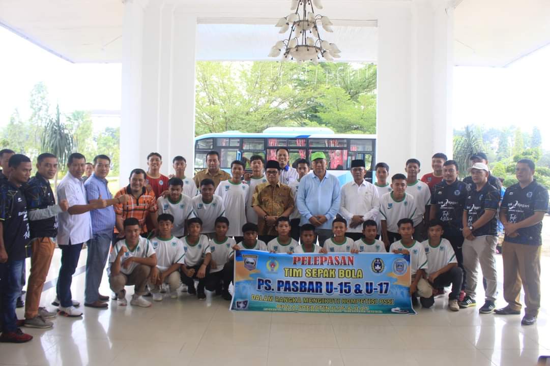 Pasbar, -Bupati Pasaman Barat Hamsuardi Lepas 23 Anggota PS. Pasbar U-15 mengikuti Kompetisi PSSI Piala Soeratin Zona Sumatera Barat (Sumbar) tahun 2023 di Gor Sungai Sariak, Pariaman.