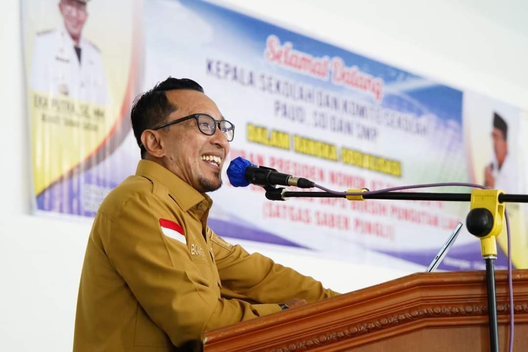 Hal itu disampaikan Bupati Eka Putra ketika membuka sosialisasi Perpres Nomor 87 Tahun 2016 tentang Satgas Saber Pungli, bagi Kepala Sekolah, Guru dan Komite Sekolah se-Kabupaten Tanah Datar, Selasa (19/12) di Gedung Maharajo Dirajo Batusangkar.