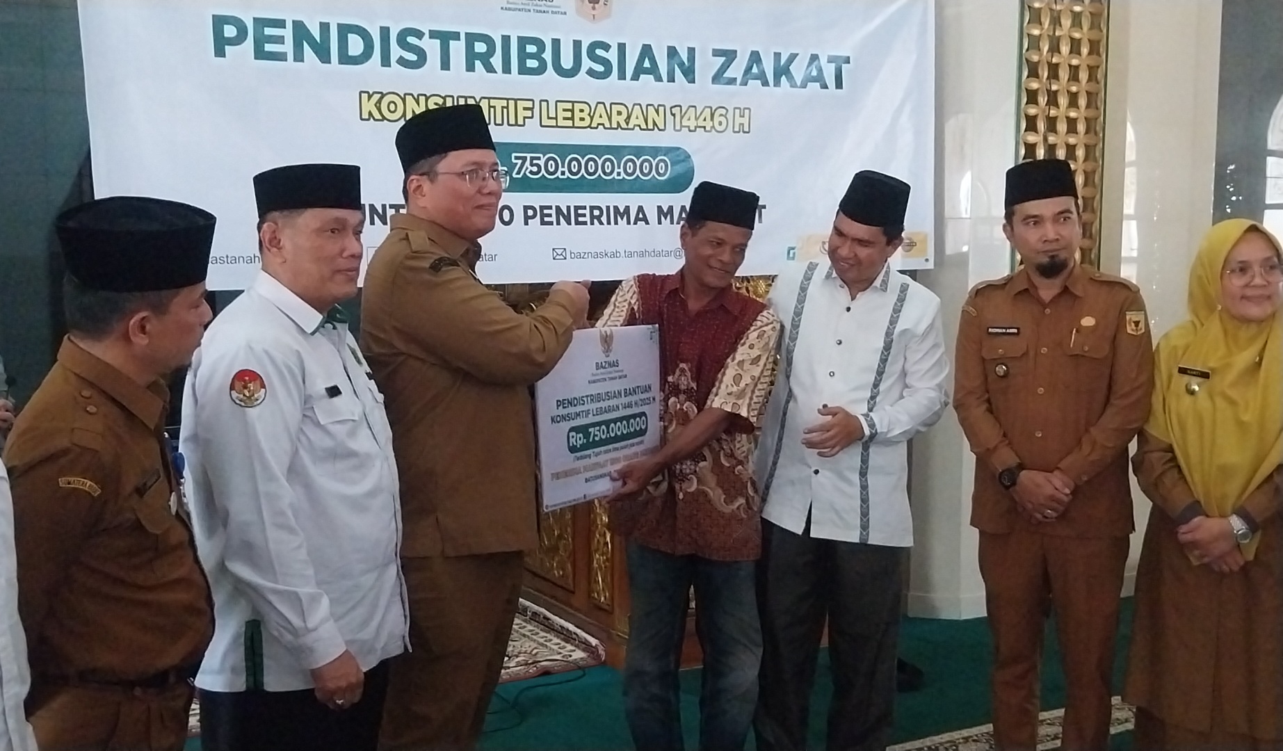 Tanah datar, — 1500 mustahik terima Zakat komsumtiv dari Badan Amil Zakat Nasional (Baznas) Kabupaten Tanah Datar Senilai rp 750 juta