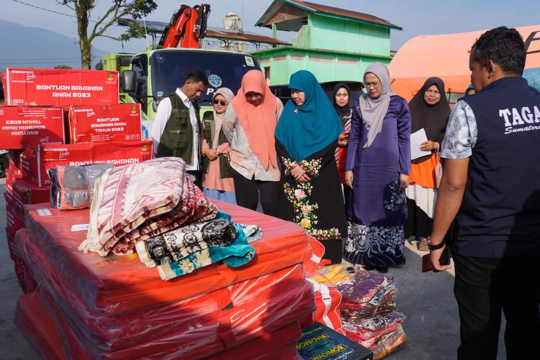 Ummi Harneli menyerahkan bantuan paket sembako kepada 15 KK, serta bantuan family kit, perlengkapan makan, selimut, paket sandang, paket mie instan dan kebutuhan lainnya.