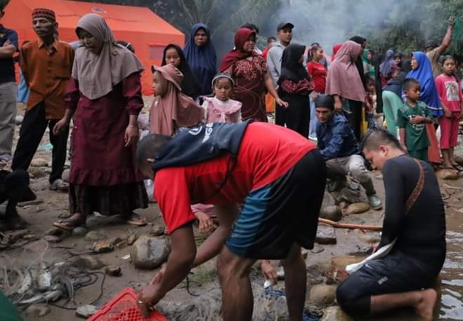 Benny Utama dalam kunjungan tersebut, bermalam dipinggiran sungai dengan memakai tenda yang disiapkan BPBD Pasaman. Dan makan bersama dilaksanakan di pinggir sungai, dengan lauk ikan garing bakar yang gurih dan nikmat, ditemani Samba Lado Tanak yang disiapkan Ibu-Ibu PKK Kecanatan Mapattunggul Selatan. (Akmal)