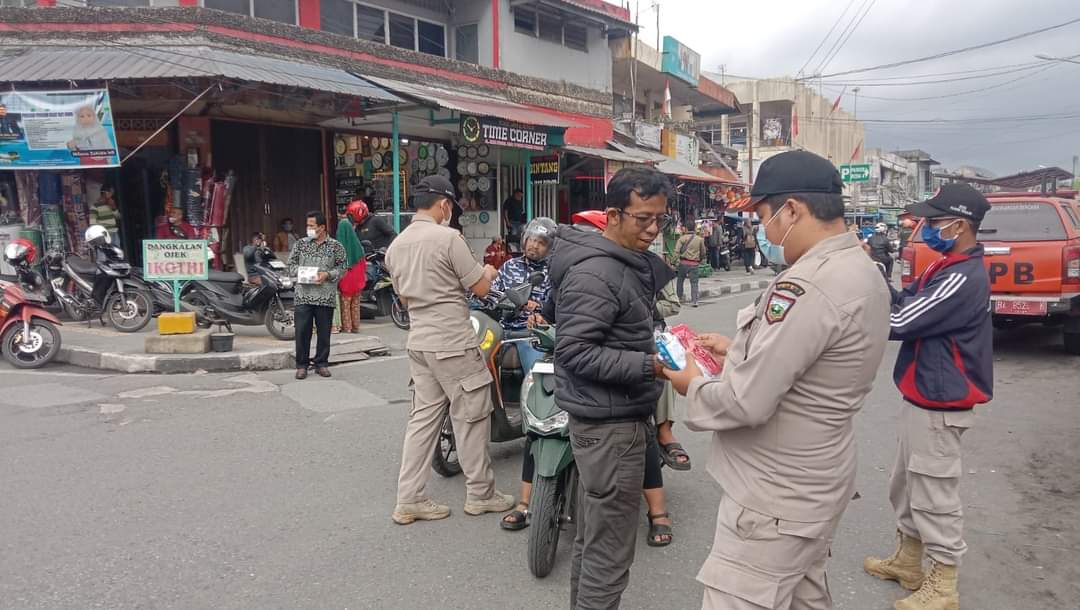 PADANG PANJANG,  – Pusat Pengendalian Operasi Penanggulangan Bencana (Pusdalops PB) BPBD Kesbangpol bagikan 1.000 masker kepada warga di perempatan Pasar Pusat Padang Panjang jumat (19/1)