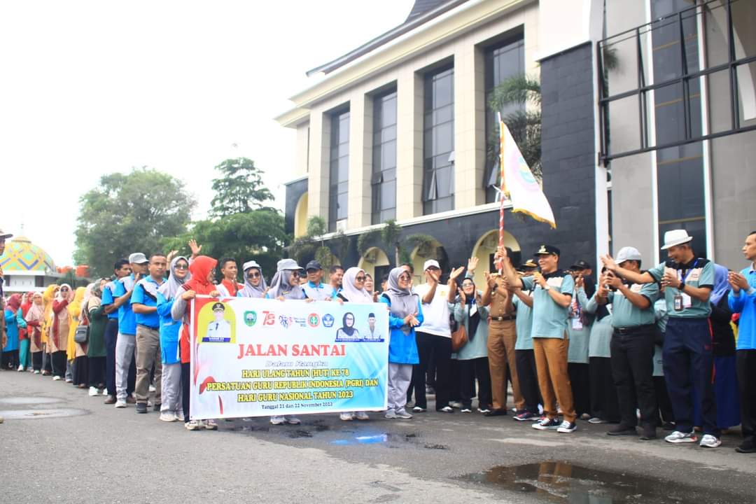 Pasaman,—PLT Bupati Sabar.AS , lepas gerak jalan santai hari PGRI ke 78 yang dipusatkan dihalaman kantor Bupati
