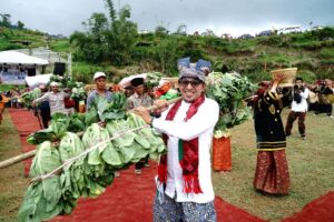 Kemudian saat penampilan kolosal berlangsung tiba-tiba terlihat dari lereng gunung Singgalang para petani yang terdiri dari kaum Bapak dan Ibu-ibu serta anak-anak berjejer menuruni lereng sambil menggotong dan memikul sayur lobak hingga ke lapangan dan disambut langsung Bupati Eka Putra yang juga turut memikul sayur tersebut di pundaknya