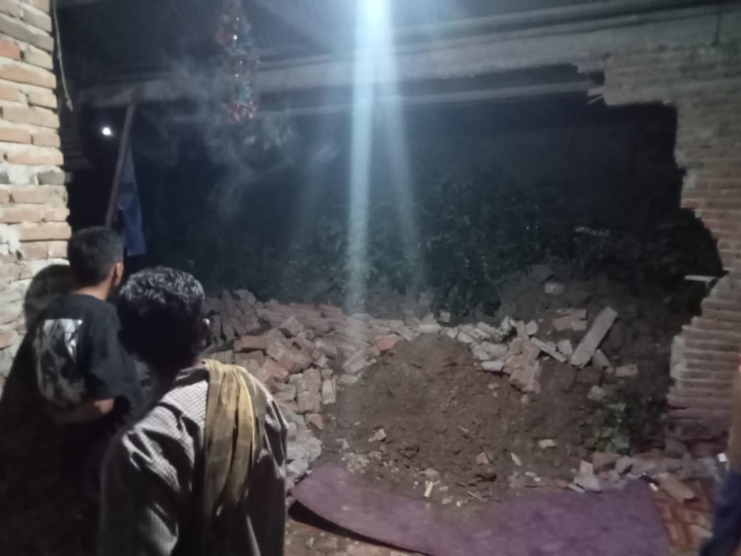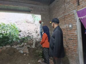 saat itu wiwit bersama keluarga sedang di dalam rumah itu dan mereka tiba-tiba mendengar seperti ada benda yang terus-terusan jatuh dibelakang rumahnya dan rupanya longsor telah ikut menimpa sebagian rumahnya