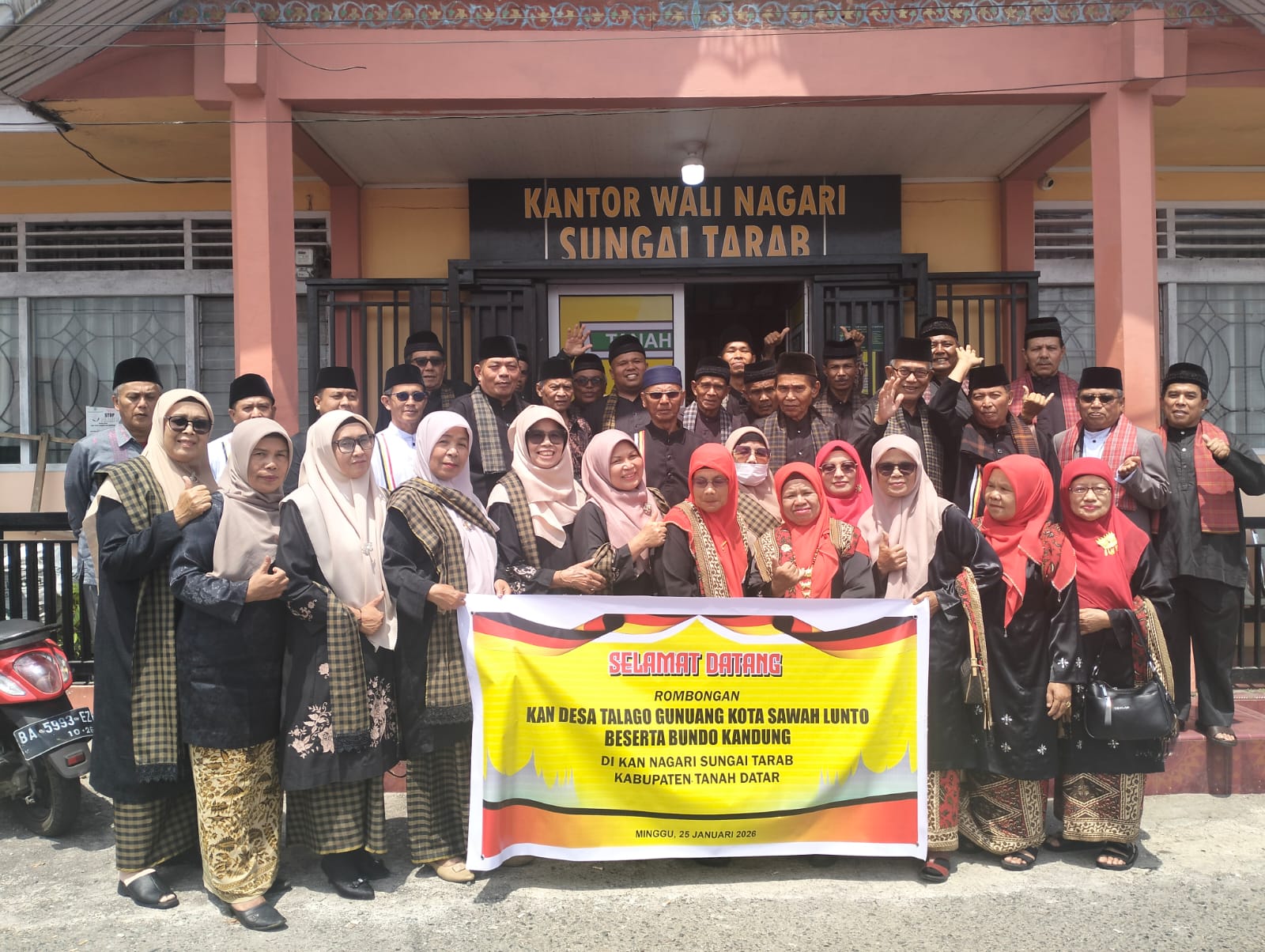 Tanahdatar,—Pengurus Kerapatan Adat Nagari (KAN) Talago Gunuang bersama Bundo Kanduang Kota Sawahlunto melaksanakan kunjungan silaturahmi ke KAN Nagari Sungai Tarab, Kecamatan Sungai Tarab, Kabupaten Tanah Datar Minggu (25/1l
