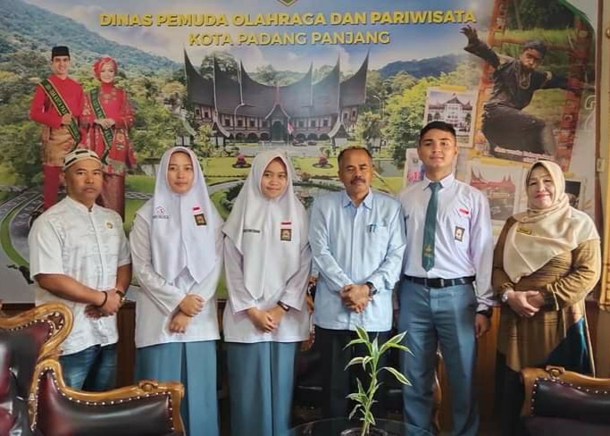 PADANG PANJANG,–Tiga calon Pasukan Pengibar Bendera Pusaka (Paskibraka) Tingkat Provinsi Sumatera Barat dari Kota Padang Panjang, dilepas Kepala Dinas Pemuda Olahraga dan Pariwisata (Disporapar), Drs. Maiharman