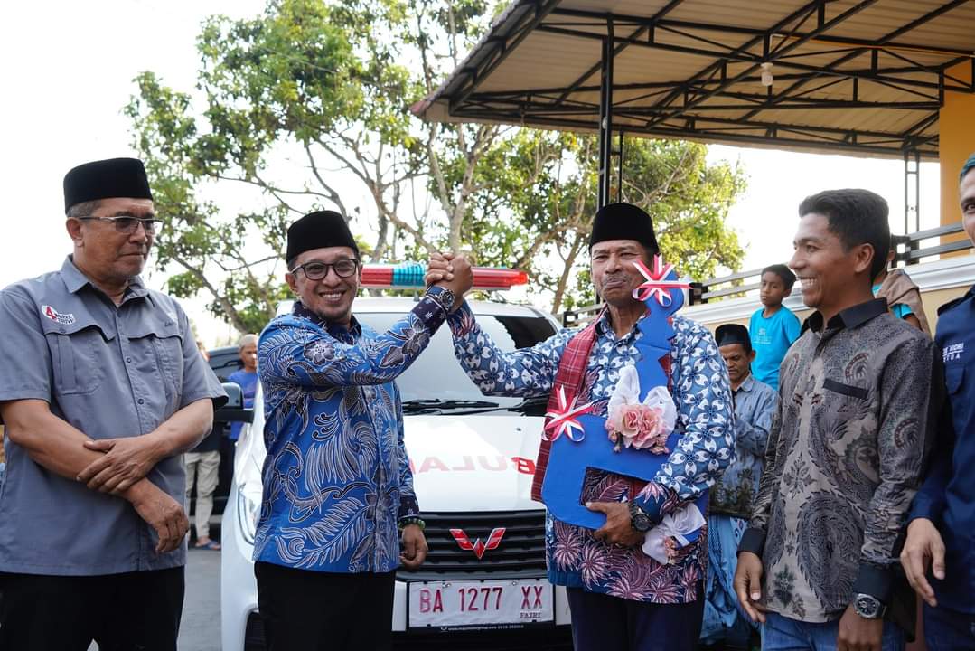 Ambulance diserahkan Bupati Tanah Datar Eka Putra kepada Wali Nagari Talang Tangah Andri Andres disaksikan anggota DPRD Tanah Datar Nurhamdi Zahari, Kepala Dinas Kesehatan Tanah Datar Yesrita Zetrianis, Sekretaris Dinas Kesehatan Tanah Datar Veri Winora, dan Camat Sungai Tarab Miza Aziz, di Mesjid Nurul A’la, Nagari Talang Tangah,